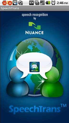 Magically Speak and Understand Different Languages within a matter of Seconds with 99% Speech Recognition Accuracy Powered by Nuance! Have you ever met a person you really like but due to the language barrier you wouldn't be able to start a chat? SpeechTrans is here to help you out! Now includes a Patent Pending FACEBOOK VOICE TRANSLATION CHAT and SMS VOICE TRANSLATION CHAT. Speak in your native language and translation is read aloud on the other screen in any other language!