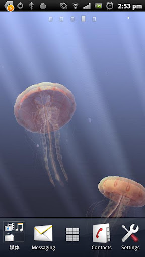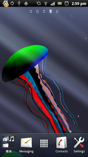 A nice underwater scene with lots of jellyfish that you can interact with. 3D JellyFish is a live wallpaper for Android 2.2+ deviecs. that renders a nice underwater scene with lots of jellyfish that you can interact with. 3D JellyFish is not a movie, this live wallpaper is implemented by OpenGL 2.0 for its animation and you can interact with it. IMPORTANT: * 3D Jellyfish Live Wallpaper supports Android 3.0 and is optimized for Android Pad. Features: * The most realistic jellyfish simulation; * Dynamically simulated skeletons (spring chains); * Well implemented and optimized by OpenGL 2.0; * Camera-facing particle system and volumetric light effect; * More sophisticated lighting, model and simulation controls; * Improved animation and shading; * Optimized for Android 3.0 and Android Pad; * Can be installed to SD Card; * 100% ads free; * No permissions; Required Android O/S : 2.2+ https://play.google.com/store/apps/d...aper.jellyfish http://www.directmirror.com/files/ISROCXYO |